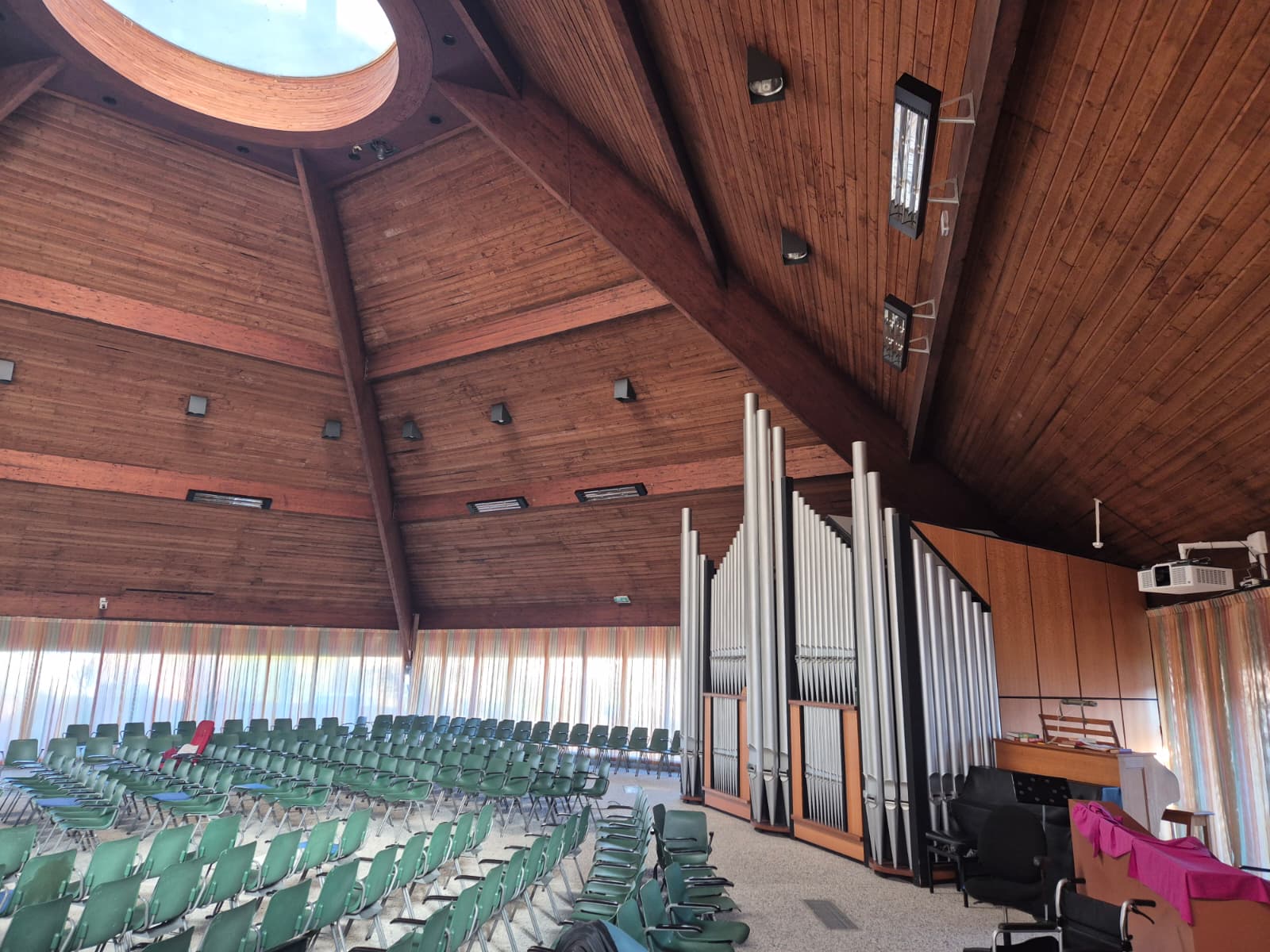 In de hoofdzaal van PKN De Ark in Berkel en Rodenrijs zaten bezoekers regelmatig in de kou door slechte isolatie en luchtcirculatie. Na een technische schouw ontwikkelden wij een installatieplan met 10 Aurora infraroodstralers, verdeeld over drie slimme zones. In plaats van grote luchtvolumes te verwarmen, wordt de warmte direct afgegeven aan mensen, stoelen en vloer. Dit zorgt voor een aangenaam en gelijkmatig binnenklimaat met minimale energieverliezen. Tijdens een winterse test steeg de temperatuur binnen één uur van 12 naar 18 graden. De volledige installatie, inclusief besturing en montage, werd gerealiseerd voor € 23.328,97 excl. btw.